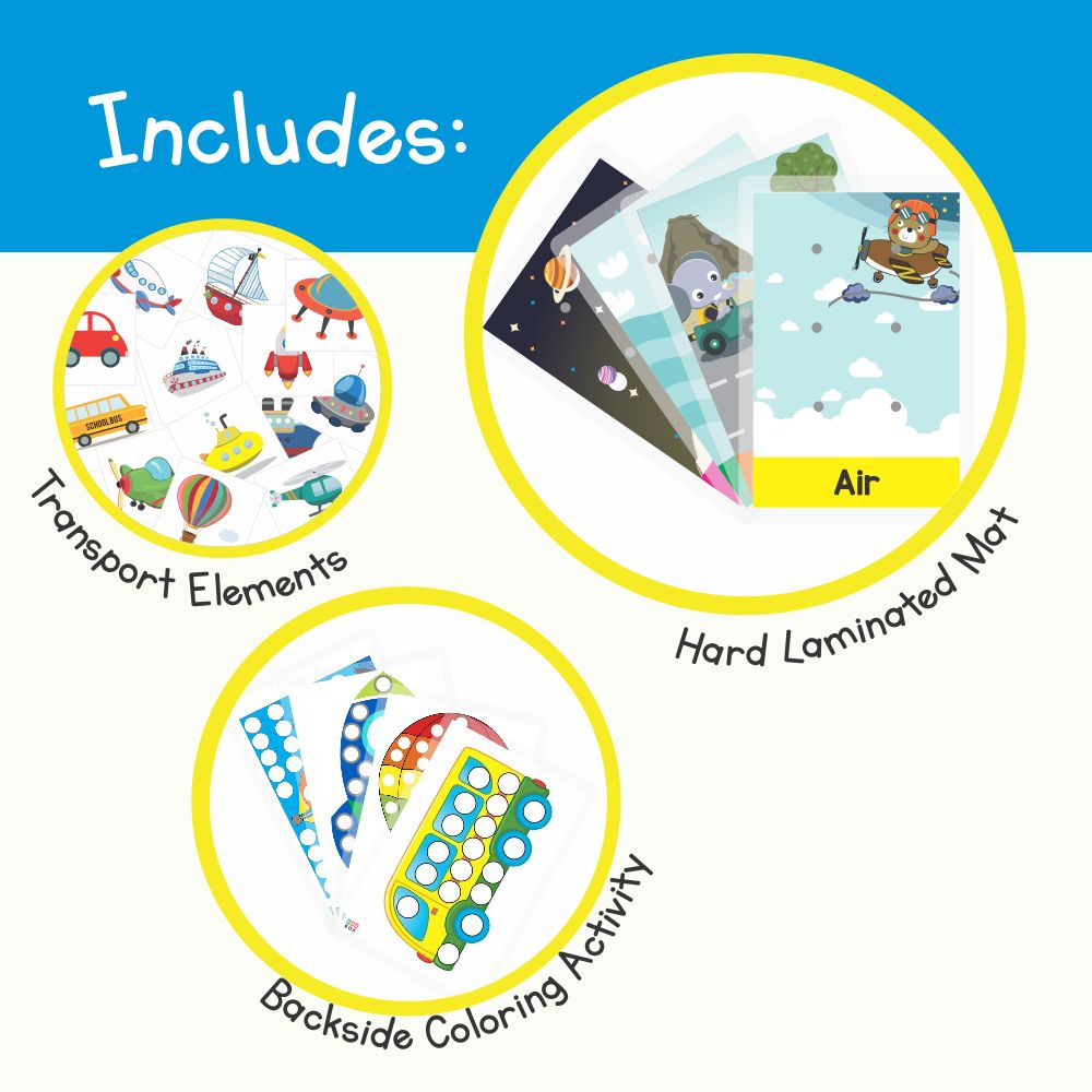 - 24 Vehicle Elements: A diverse collection of vehicles, including cars, planes, boats, and rockets, ready to be sorted onto the correct mats.